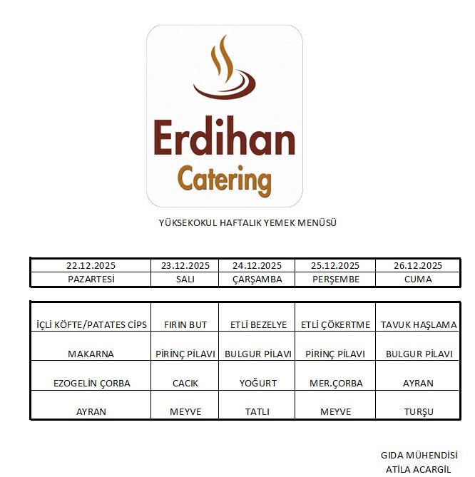 Yemekhane Haftalık Menü Duyurusu (22 -26 Aralık 2025)