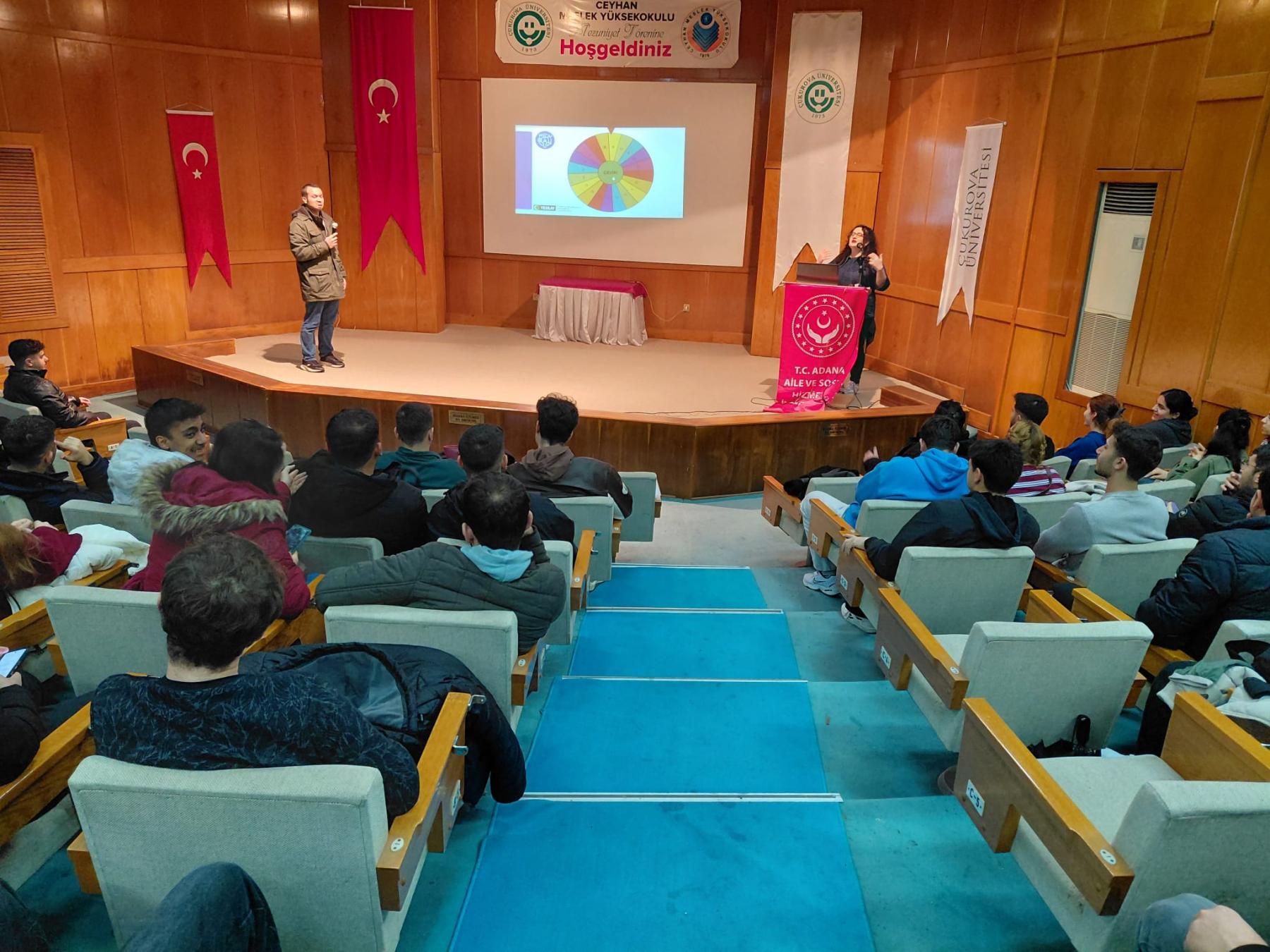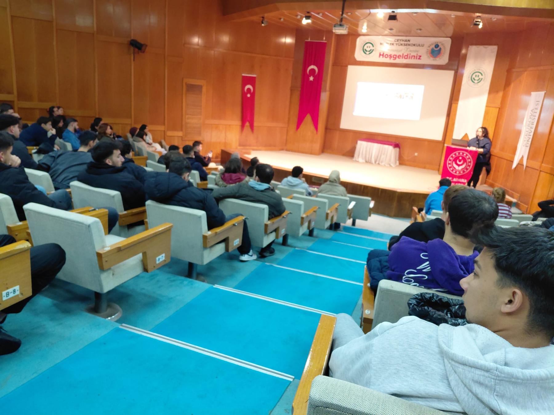 Adana Aile ve Sosyal Hizmetler İl Müdürlüğüne bağlı Ceyhan Sosyal Hizmet Merkezi Müdürlüğü Eğitim Biriminde görevli TBM Formatörü Fundagül KARAGÖZ tarafından Çukurova Üniversitesi Meslek Yüksek Okulu öğencilerine yönelik Türkiye Bağımlılıkla Mücadele Programı kapsamında "Teknoloji Bağımlılığı" konulu seminer düzenlenmiştir.